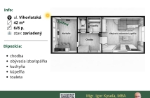 - celková plocha bytu je 42 m2, 6. poschodie