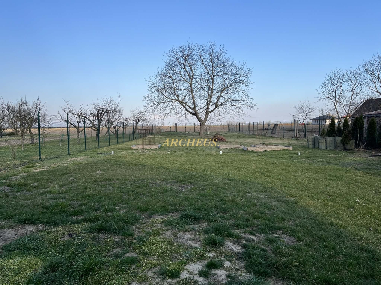 - veľký rovinatý oplotený pozemok cca 18 árov (rodiace ovocné stromy), klenbová vínna pivnica