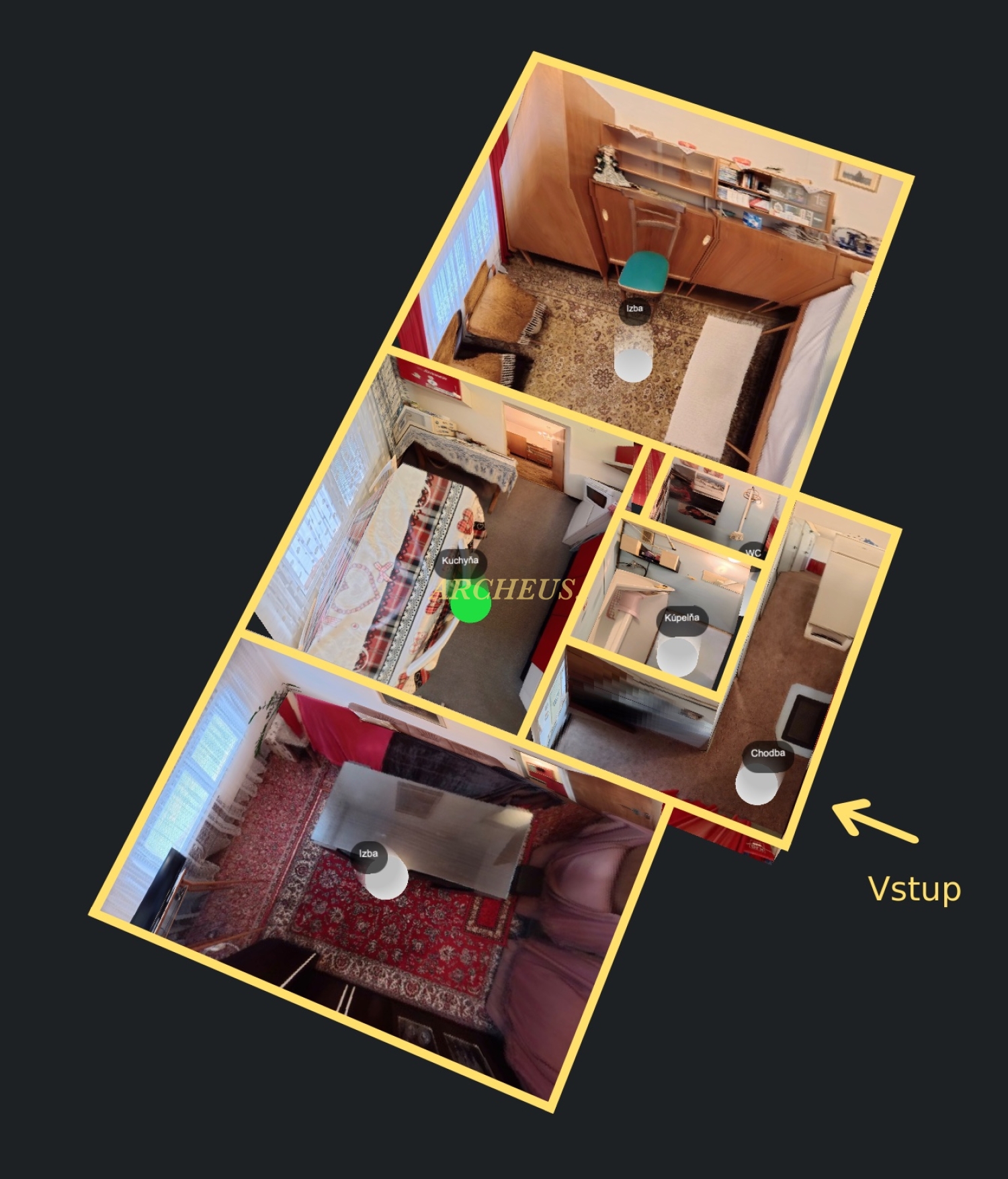 - byt pozostáva zo vstupnej chodby, kuchyne, dvoch nepriechodných izieb, kúpelne a samostatného WC