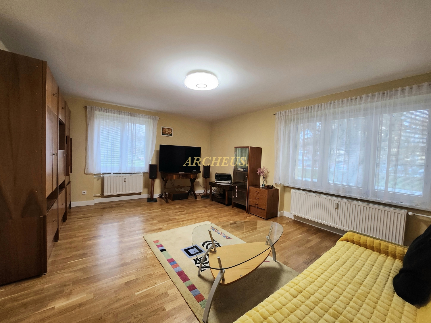 - v izbách, na chodbe a kuchyni plávajúca drevená podlaha, v kúpeľni a WC dlažba