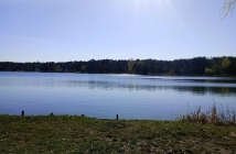 * rovinatý pozemok medzi dvomi jazermi priamo pri ceste