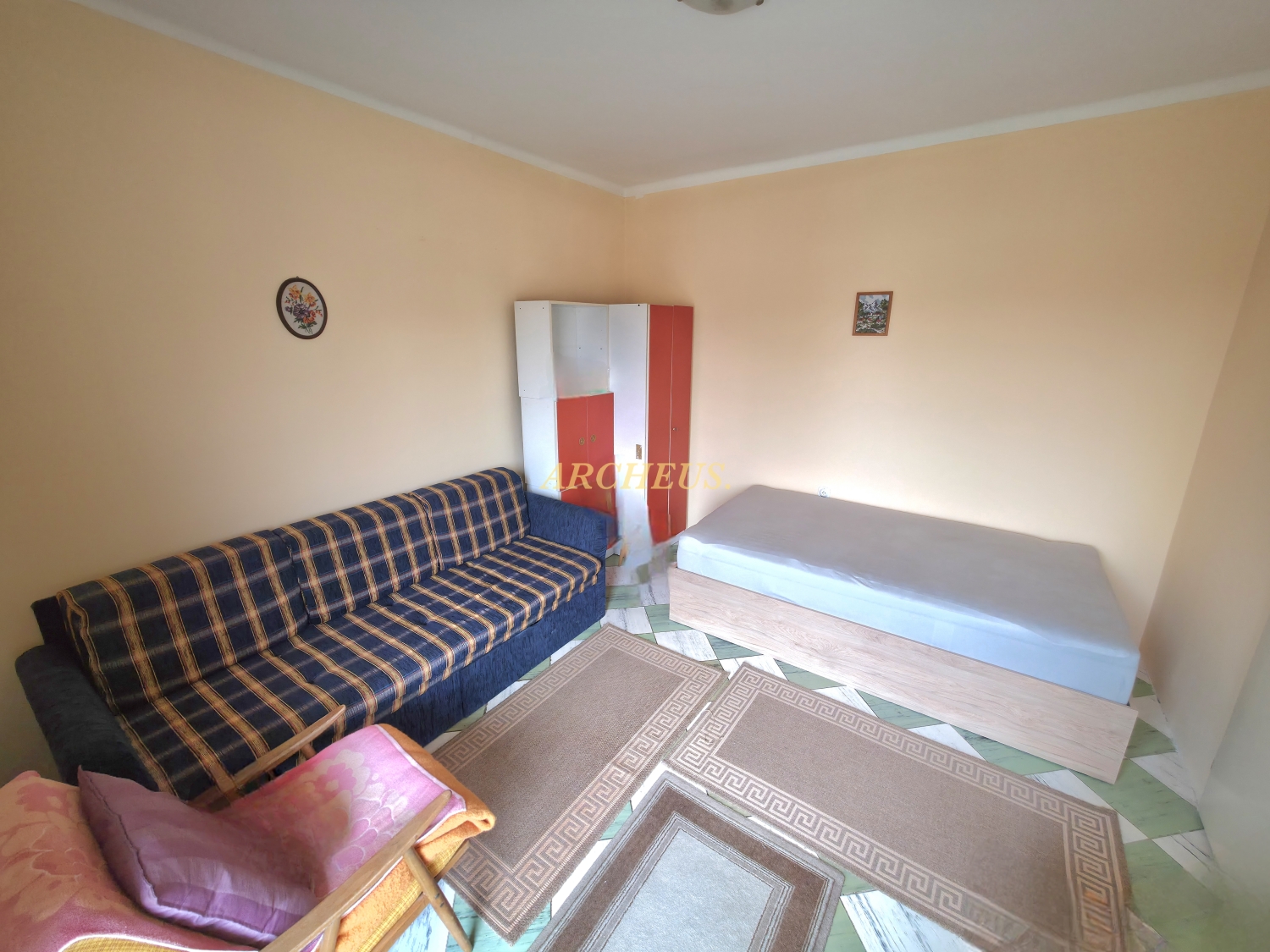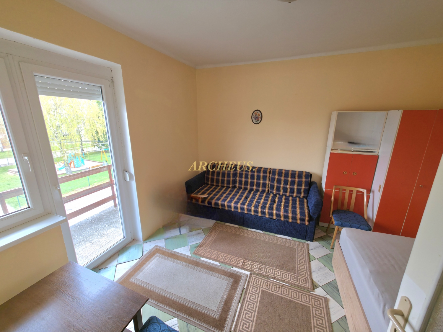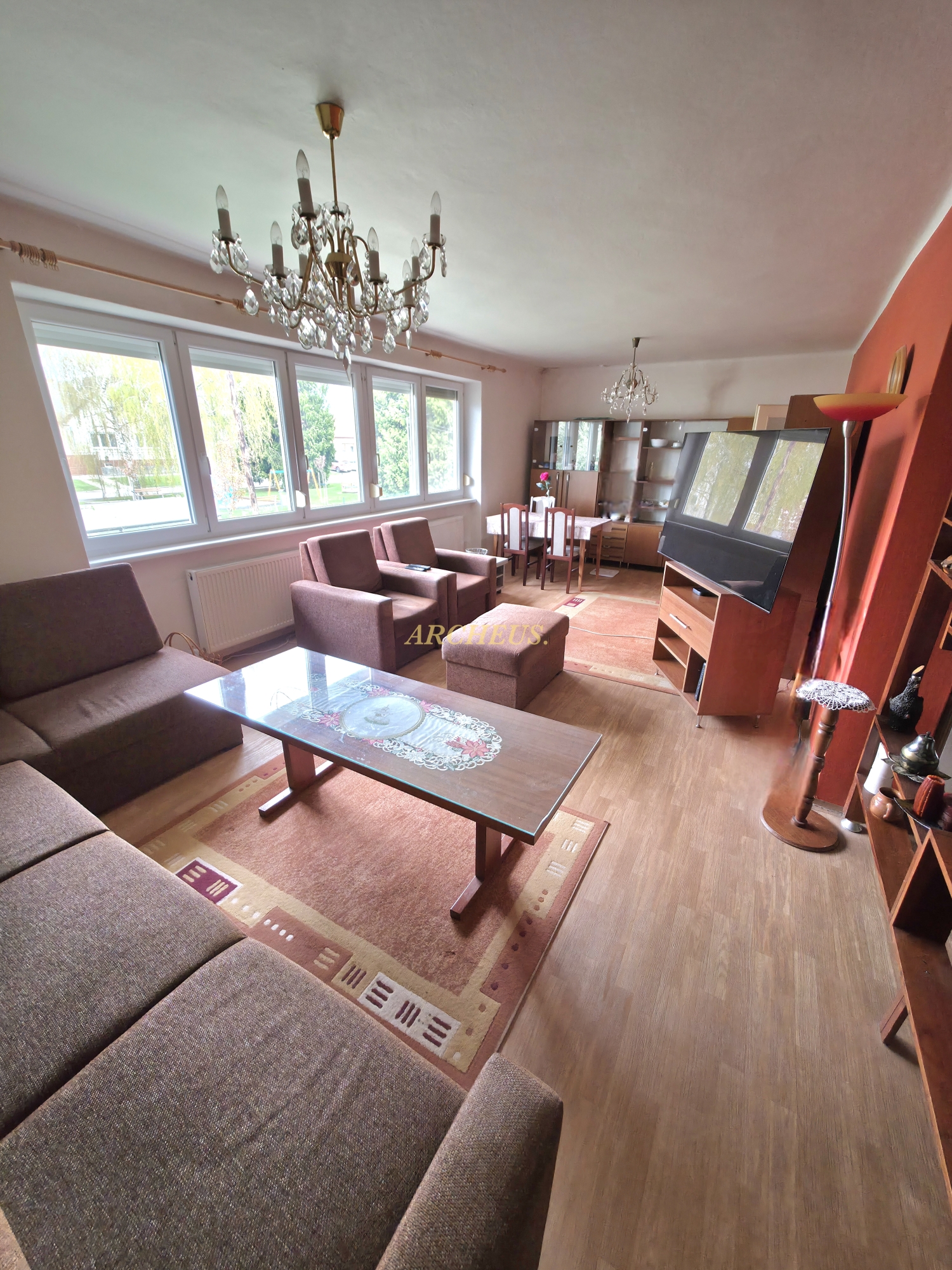 vstupná chodba, priestranná obývacia izba prepojená s jedálňou, kuchyňa, samostatná izba, kúpeľňa s WC