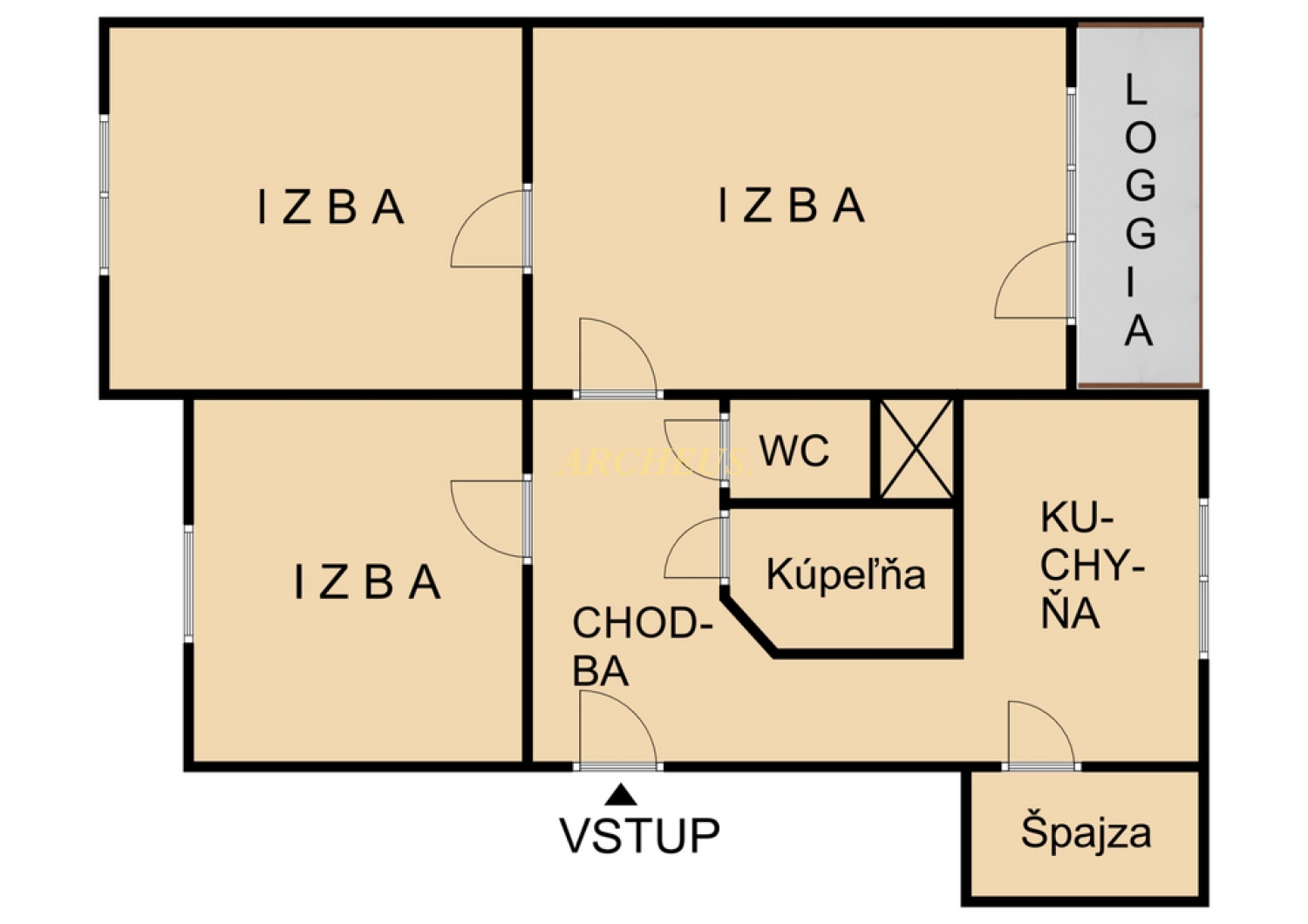 - podlahová plocha bytu je 67 m2, prináleží k nemu pivnica, loggia a špajza