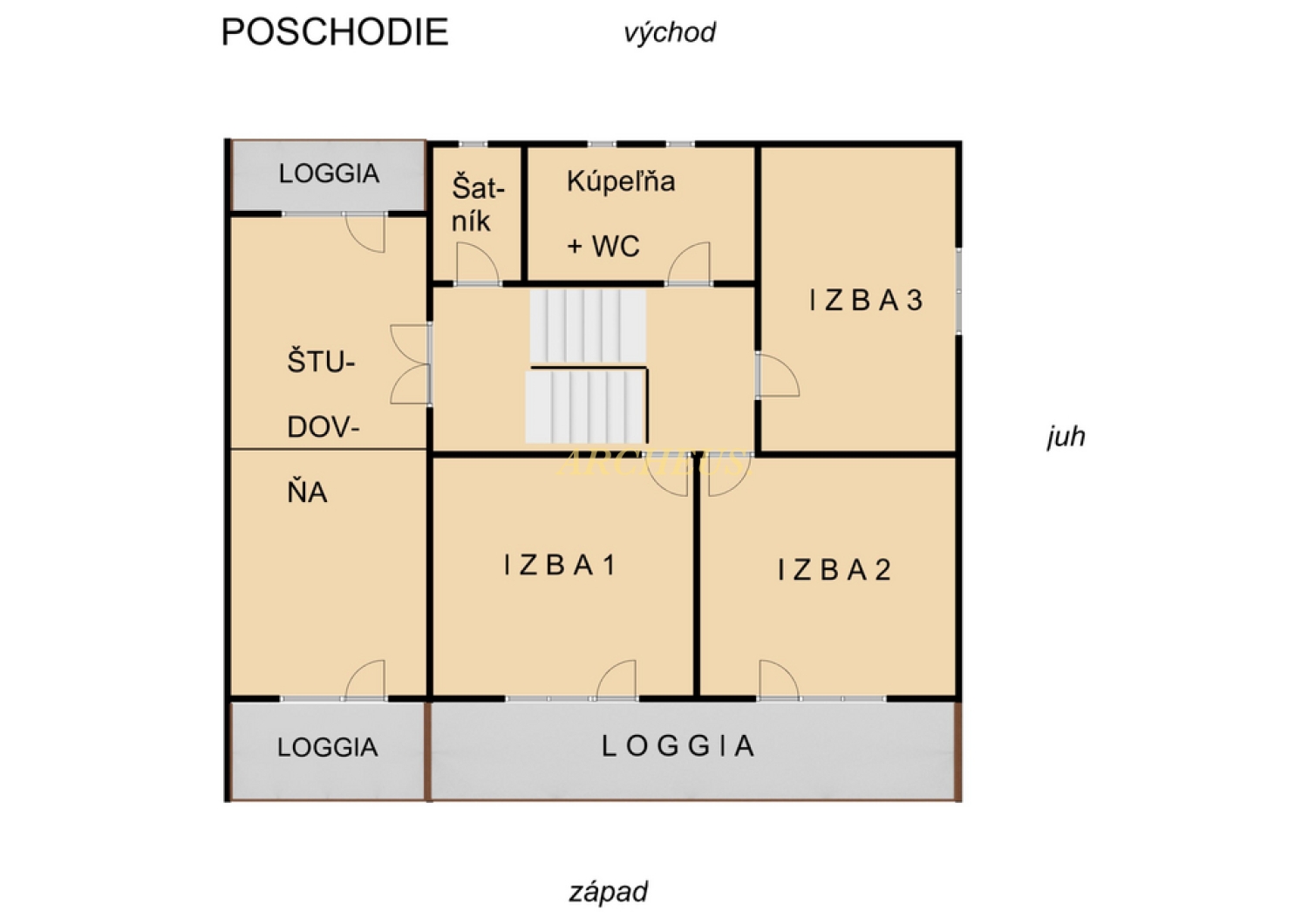 - na medziposchodí sa nachádza: veľká izba (študovňa) a šatník