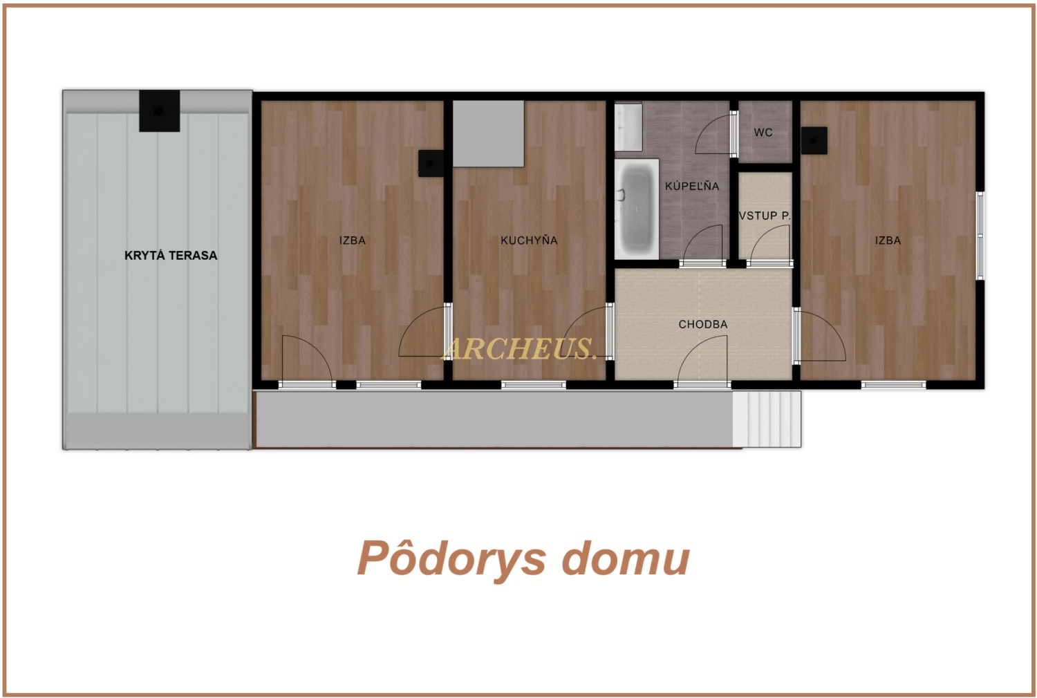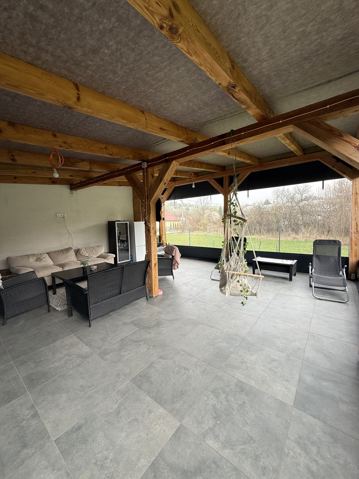- Dominantou je veľkorysá krytá terasa, ktorá sa stane tvojím obľúbeným miestom – na ranné ticho, popoludňajší oddych aj večerné rozhovory pod hviezdami.